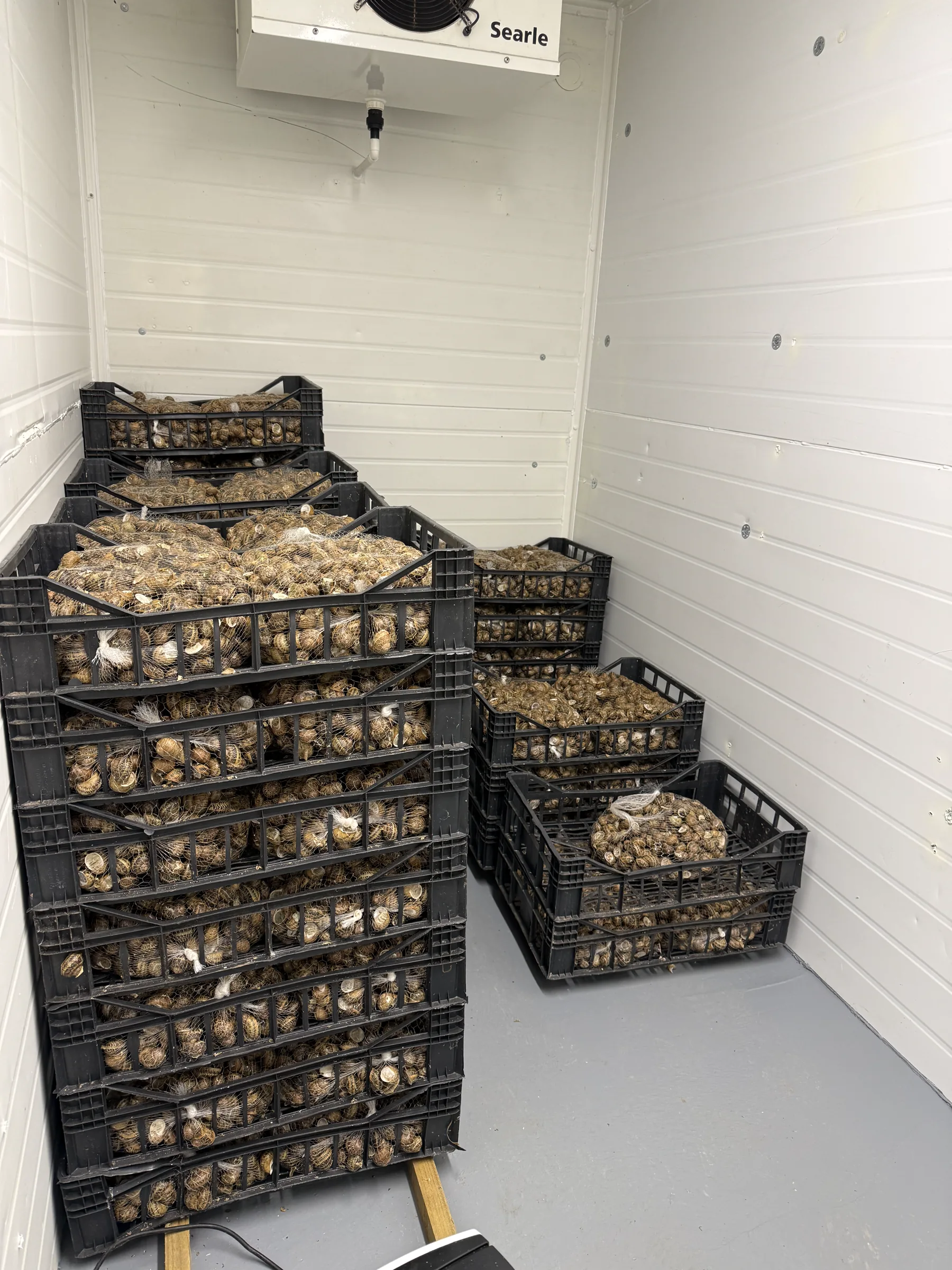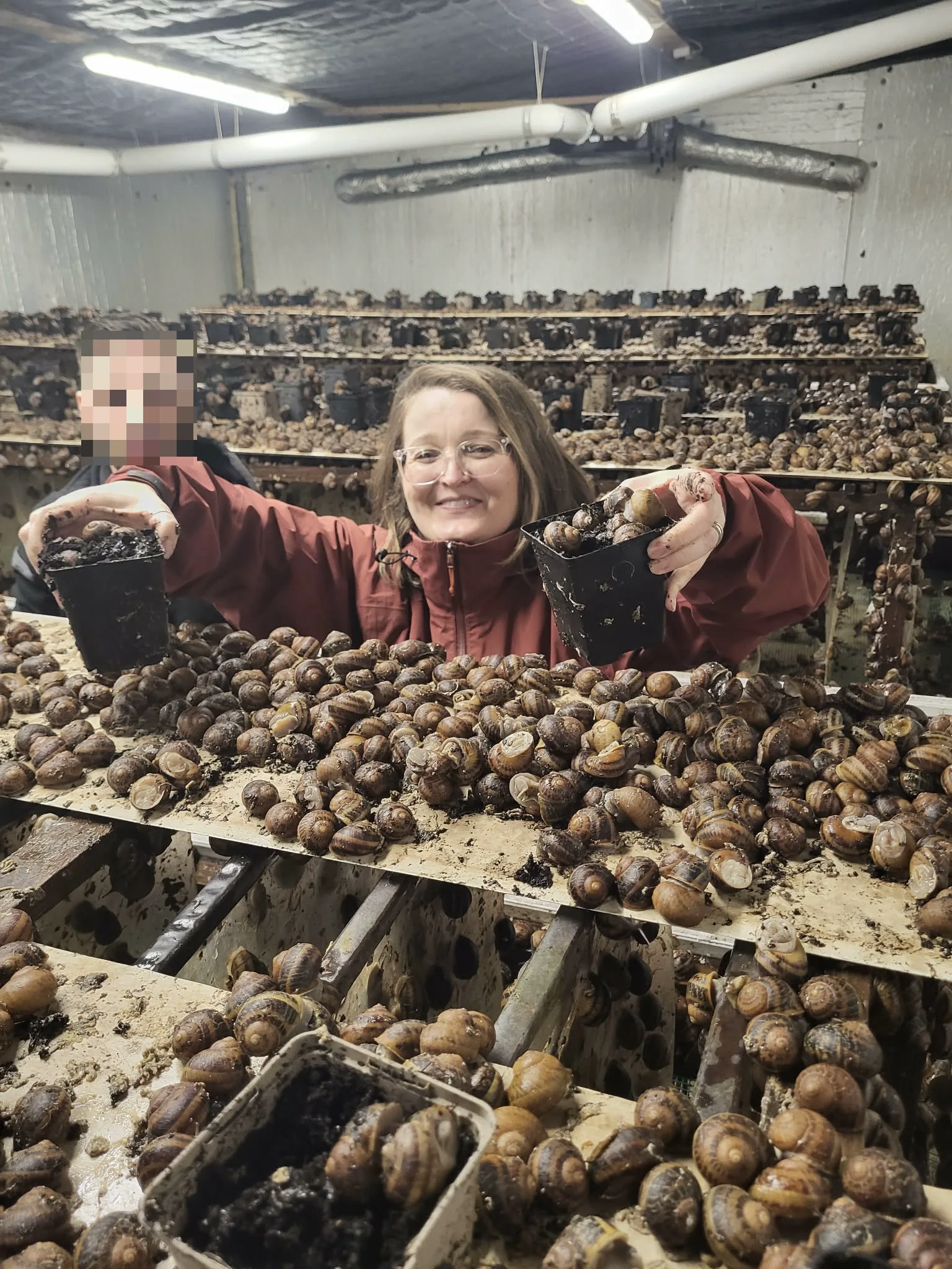 Hér liggja sniglar í dvala í kæli og eru tilbúnir til afgreiðslu þegar pantanir berast.