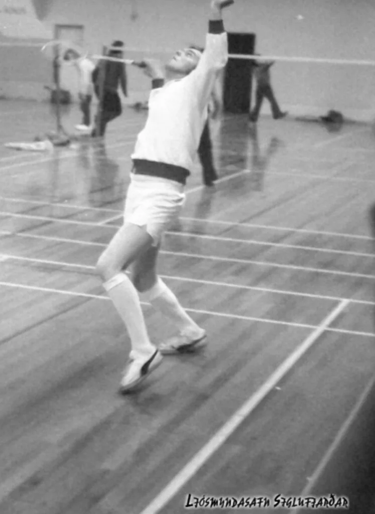 Myndasyrpan hér neðar sýnir okkur flotta badminton takta hjá konum og körlum á óþekktu móti í Sundhöll Siglufjarðar. Eins og vanalega var Steingrímur Kristinsson á staðnum og tók fjöldann allan af myndum, í myndskýringatexta kemur hvergi fram hvaða ár þetta er, en ef dæma má út frá hártísku og klæðaburði íþróttafólks og áhorfenda í útvíðum gallabuxum, er það kannski alveg óvitlaus ágiskun að þetta sér á árunum 1974-76.