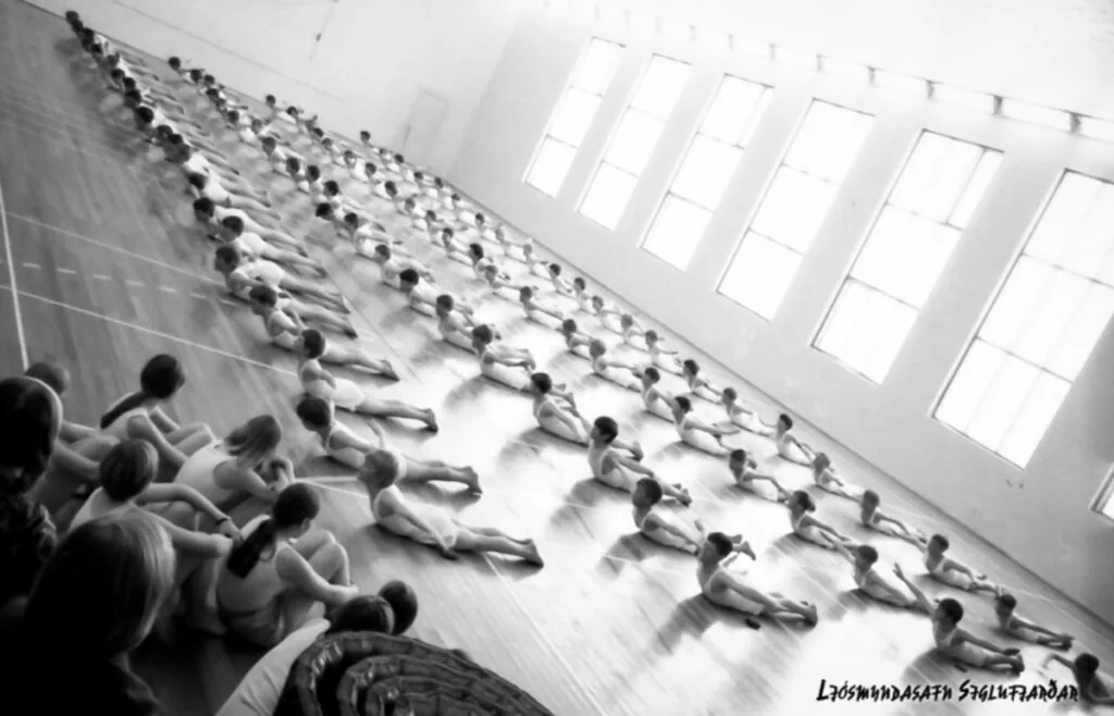 Nema þessum frægu skólaleikfimi- sýningum. Þá var mest hljóðlátlega tiplað á tánum….