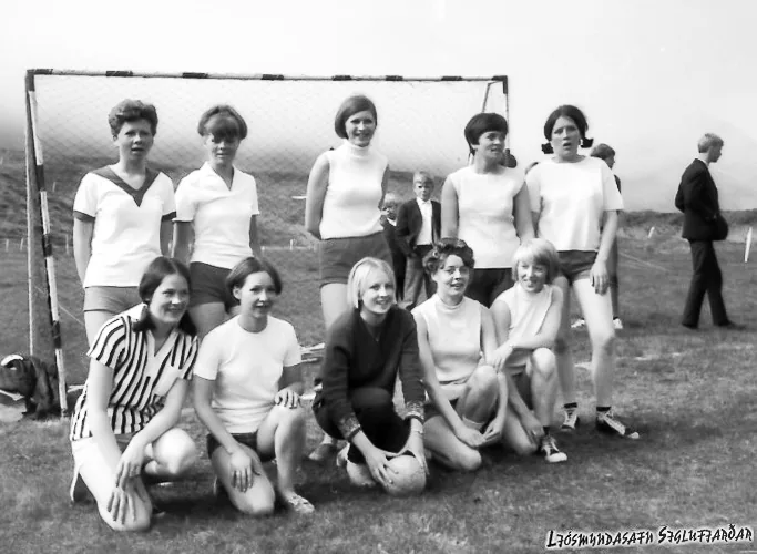 Því miður fann ég engar ljósmyndir frá Þessu tímabili, en hér kemur ein sem sýnir KS stelpur spila handbolta á grasvelli.